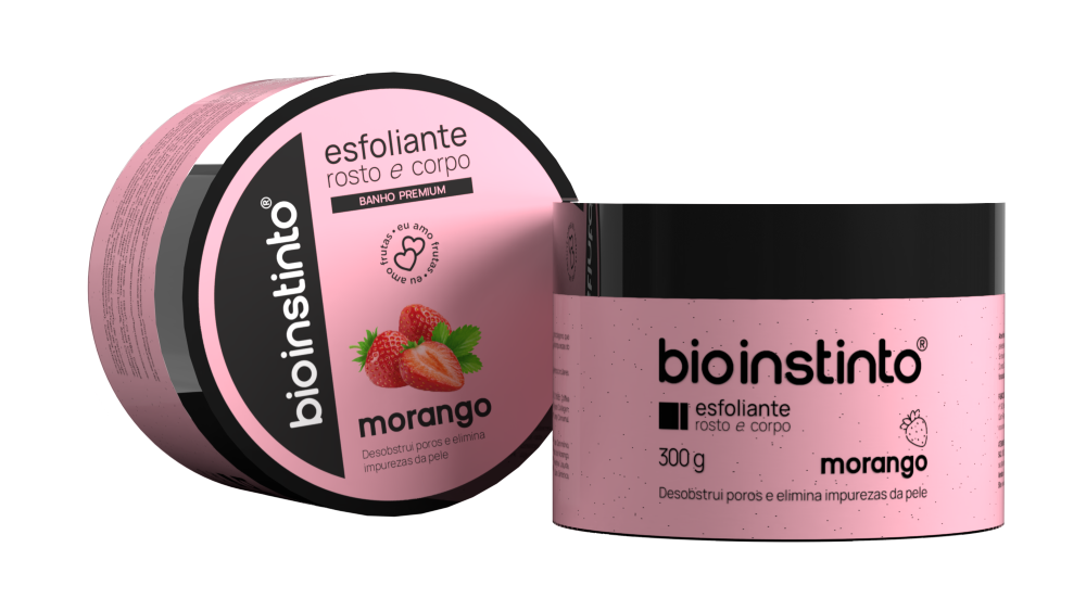 Finalidade: O Esfoliante Rosto e Corpo Morango Bio Instinto combina a irresistível fragrância e o extrato de morango, com colágeno, que auxilia na firmeza e elasticidade da pele, proporcionando maciez e toque aveludado. Sua esfoliação suave elimina as impurezas do rosto e do corpo, desobstrui os poros e ajuda a renovar a pele, realçando seu brilho natural.